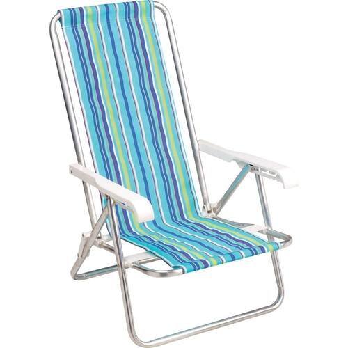 Esta cadeira de praia reclinável da Mor é dobrável, leve, prática e vem com 4 posições, para você relaxar. Assim que não estiver mais usando, basta dobrar a cadeira e guardar em qualquer cantinho, já que não ocupa muito espaço.Ela possui estrutura fabricada pela Mor em alumínio de excelente qualidade e suas peças plásticas são feitas em polipropileno. O alumínio deixa a cadeira mais leve e garante maior durabilidade mesmo em áreas litorâneas. Conta ainda com braço largo e ergonômico com regulagem para quatro posições, para que você relaxe na inclinação que for mais confortável. Sua tela é produzida em 100% polietileno é super resistente. Características do produto: - Cadeira dobrável e leve - Reclinável em 4 posições - Encosto grande, para mais conforto Especificações técnicas Marca: Mor Modelo: Reclinável 4 posições Cor: Colorido Composição: Alumínio. Tela 100% polietileno Peso Máximo: 100kg Dimensões: 72,50 x 53 x 83 cm Peso: 1,7Kg Cuidados Especiais: Lavagem manual. Não usar alvejamento a base de cloro. Não limpar a seco. Não remover manchas com solventes.