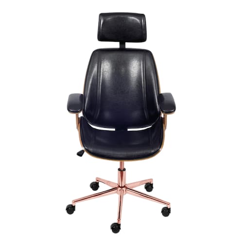 A Cadeira de Escritório Presidente Bergen Giratória na cor preta com acabamento em rose gold é uma peça de luxo que alia sofisticação, conforto e funcionalidade. Com dimensões amplas, possui largura de 63 cm, altura regulável entre 116 cm e 124 cm, profundidade de 61 cm, encosto de 71 cm de altura e assento com largura de 50 cm, além de regulagem de altura entre 45 cm e 52 cm do chão. Sua estrutura é feita em madeira compensada e o revestimento em poliuretano (PU) garante durabilidade e fácil manutenção. O assento e o encosto são estofados e contam com sistema relax e apoio de cabeça, proporcionando conforto mesmo em longos períodos de uso. A base em aço cromado com cinco pontas oferece firmeza e resistência, enquanto os rodízios em nylon permitem mobilidade e praticidade no dia a dia. Suporta até 120 kg e necessita de montagem simples. Seu design sofisticado transforma o ambiente, trazendo requinte ao escritório ou home office, enquanto sua construção robusta e ergonômica garante resistência, elegância e bem-estar durante o trabalho.