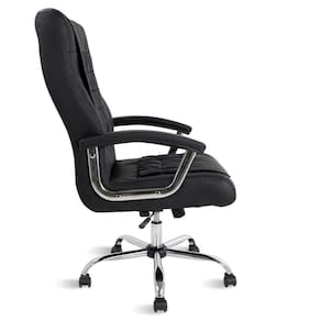 Além disso, essa cadeira presidente possui base giratória em metal cromado - um material de qualidade que proporciona maior durabilidade e resistência à peça, braços fixos e regulagem de altura.