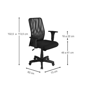 Requer montagem: Sim | Inclui manual de montagem: Sim | Quantidade de caixas de embalagem: 1 | Comprimento: 62 | Profundidade: 62 | Altura: 113,5 | Largura: 73 | ALTURA DO PRODUTO COM EMBALAGEM (CM): | PRODUTO: Cadeira de Escritório | ALTURA DO PRODUTO (CM): 113,5 | COMPRIMENTO PRODUTO COM EMBALAGEM (CM): 75 | PESO PRODUTO COM EMBALAGEM (KG): | PESO DO PRODUTO (KG): | DESCRIÇÃO DO TAMANHO: Altura: 113,5 cm x Largura: 73 x Comprimento: 62 cm | COMPRIMENTO DO PRODUTO (CM): 62 | CONTEÚDO DA EMBALAGEM: 1 Cadeira | PRODUTO PRECISA DE MONTAGEM?: Sim, a montagem é simples mas sugerimos a contratação do nosso de montagem (para os CEPs em que o está disponível) ou de algum experiente de sua preferência | COM ALTURA AJUSTÁVEL: Sim | CÔMODO INDICADO: Escritório | INSTRUÇÕES/CUIDADOS: Limpar com pano macio e seco, não utilizar produtos abrasivos | COM ENCOSTO RECLINÁVEL: Sim | É GIRATÓRIA: Sim | MATERIAL PRINCIPAL: Poliéster | ESTADO DE ORIGEM: SP | PESO MÁXIMO SUPORTADO: 120 | TIPO DE CADEIRA: Escritório | MATERIAL PARA FILTRO: Poliéster | LARGURA PRODUTO COM EMBALAGEM (CM): | LARGURA DO PRODUTO (CM): 73 | CORES DO PRODUTO (FILTRO DE CORES): Preto | COR PREDOMINANTE: Preto | COM RODAS: Sim | MARCA: Plata | COM APOIO DE BRAÇOS: Sim