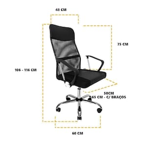 Cadeira ergônomica presidente mesh best chair com braçosA cadeira escritório executiva giratória best chair mesh é perfeita para lhe auxiliar no dia a dia. Confeccionada em estrutura de nylon e base de aço, material resistente e de ótima durabilidade, ela possui ajuste de altura, encosto com revestimento em tela mesh, sem falar no lindo estofado em espuma de densidade controlada, garantindo conforto por mais tempo. Com um lindo design, ela garante qualidade e durabilidade no seu dia a dia.CaracterísticasCor: pretaModelo: ox;Marca: best chair;Encosto: cabeça e costas em nylon;Largura: 65 cm;Altura máxima até o chão: 116 cm;Altura mínima até o chão: 106 cm;Revestimento: nylon, tela mesh net nylon ;Braço: polipropileno;Espuma: com densidade controlada;Ajuste de altura: sim.Assento:Profundidade: 45cm;Largura: 50cm;Altura máxima até o chão: 44 cm;Altura mínima até o chão: 35 cm;Braços:Altura do braço: 18 cm;Largura: 7,5 cm;Itens inclusos:01 cadeira desmontada;01 ferramenta necessária para a montagem;01 manual de montagem.
