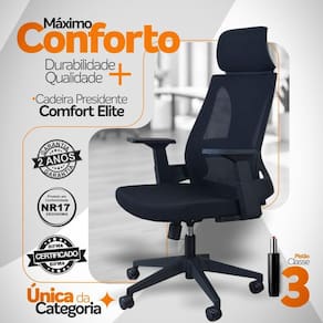 A Comfort Elite combina resistência, funcionalidade e elegância em uma cadeira ideal para home office ou ambientes corporativos.