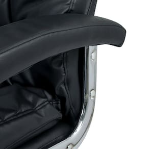 Braços em metal cromado, estofado e revestido em couro PU Preto;