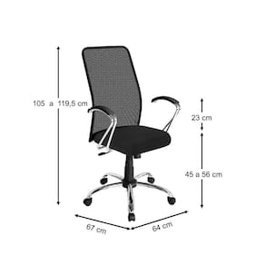 Base giratória cromada com relax e regulagem de altura com sistema a gás. Assento em tecido Space e encostos em tela super resistente preta Base e braço cromados.