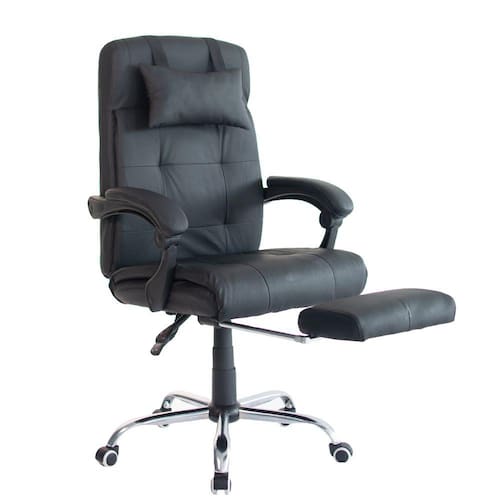Precisando de uma cadeira confortável para o trabalho? Possui assento, encosto, apoio dos pés e revestimentos dos braços em material sintético PU semelhante ao couro. Possui apoio ergonomico na lombar, apoio removível nos pés e almoçada de apoio de cabeça que pode ser retirada para a parte de trás. Os braços fixos NÃO possuem regulagem de altura. Possui regulagem de até 160ª no encosto. O Sistema Relax é acionado na mesma alavanca de regulagem de altura com trava no nível 0. Os rodízios são anti-risco.