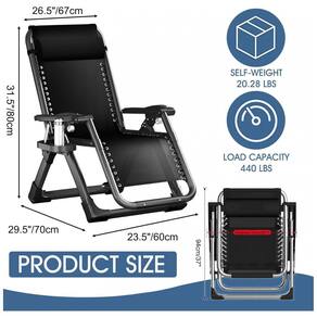 Cadeira dobrável resistenteA cadeira de gravidade zero suporta até 200kg. Tubos quadrados oblatos engrossados feitos de aço adicionam ao berço de acampamento a melhor estabilidade e capacidade de carga e atualizam o tecido para tornar o sono mais confortável. Construção segura e robustaA poltrona reclinável antigravidade possui uma estrutura de suspensão de aço para aliviar a tensão nas costas. A trava de ângulo permite travar em qualquer ângulo de reclinação, desde sentar até a posição de gravidade zero. Múltiplos ajustes A Patio Lounge Chair oferece várias posições, incluindo a posição de gravidade zero com as pernas posicionadas ligeiramente acima do coração, para o máximo relaxamento. Almofada de assento confortável As três camadas desta almofada dobrável para cadeira de gramado combinam materiais permeáveis respiráveis, garantindo respirabilidade incomparável e um tempo de secagem rápido. Também é altamente resistente à exposição aos raios UV. Uso multiuso Adequado para terraços, gramados, jardins, pátios, varandas, piscinas e praias. Quer você queira relaxar lendo um livro ou fazer uma pausa rápida, esta cadeira confortável é a solução ideal Marca: Não Informado