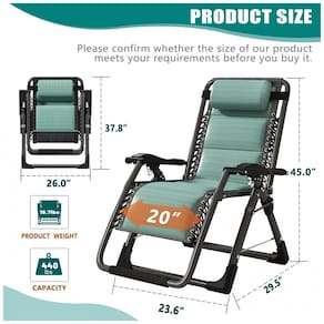 PESADO Nossa cadeira de gravidade zero suporta até 200 kg. O tubo de aço é engrossado, para que a cadeira não balance ou desmorone, e a capacidade de carga seja maior e mais segura. Atualizando o tecido para tornar o sono mais confortável SISTEMA DE BLOQUEIO Esta poltrona reclinável ao ar livre pode ser ajustada de 90 a 170 sem esforço para sua preferência. Simplesmente empurre o clipe para desbloquear a posição e puxe o clipe para trás para prendê lo na posição desejada PORTÁTIL E FÁCIL DE USAR Esta cadeira de gramado dobrável pode ser dobrada e desdobrada em segundos. As espreguiçadeiras de camping são fáceis de transportar e zenar, e você pode carregá las facilmente de carro. Adequado para terraços, relvados, jardins, quintais, varandas, piscinas e praias PROJETO DE ALMOFADA DE PÉ ALARGADO Torna a cadeira mais estável, evitando danos ao chão o reforço do conector torna o quadro mais estável e não é fácil de deformar. USO MÚLTIPLO Se você deseja relaxar lendo um livro ou fazer uma pausa rápida, esta cadeira confortável é a solução ideal. Pode ser para atividades internas e externas, como reuniões familiares, churrascos ou dias de praia, ou no escritório Marca: Não Informado