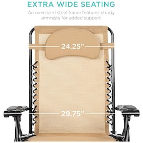 ASSENTO EXTRA LARGO Desfrute de muito espaço para relaxar com um assento extra largo de 60 centimetros, um conjunto de apoios de braço e um encosto de cabeça para maior conforto. SISTEMA DE RECLINAÇÃO COM TRAVAMENTO Deslize suavemente para uma posição ergonômica de gravidade zero com um sistema de travas e faixas elásticas para suporte extra. MATERIAIS PREMIUM O tecido de fabricene resistente aos raios UV e às intempéries combinado com uma estrutura de aço e faixas elásticas substituíveis garantem anos de assentos superiores. LEVE O EM MOVIMENTO Um design leve e dobrável torna esta cadeira fácil de desfrutar em casa, na praia, no parque ou na sua próxima bagageira. BANDEJA LATERAL DESTACÁVEL Inclui uma conveniente bandeja de acessórios equipada com dois porta copos, um suporte para telefone e um suporte para tablet para manter seus dispositivos favoritos à mão. Até 113 kg Marca: Não Informado
