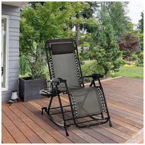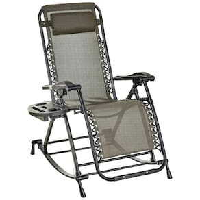 Balanço reclinável de gravidade zero nossa cadeira de balanço ao ar livre é uma poltrona reclinável ou cadeira de pé com apoio para os pés. Divirta se balançando, deitado ou sentado com suspensão elástica, tecido fresco e respirável e um travesseiro. Cadeiras de balanço dobráveis monte, desmonte e zene rapidamente. Com uma estrutura dobrável, você pode manter o conforto de gravidade zero em seu carro. Bandeja porta copos o conforto de balanço com gravidade zero não é tudo há um lugar para o seu telefone também. Uma bandeja oferece porta copos, slots e um local para lanches. Pronto para ambientes externos nosso balancim reclinável resiste sob pressão com uma estrutura de aço forte e um acabamento revestido a pó para suportar 120 kg. do peso total enquanto ainda é para a água. Informações da cadeira de gravidade zero Posição vertical 119 L x 66 L x 101 A centimetros. Totalmente reclinado 132 C x 66 L x 93 A centimetros. Dobrado 109 C x 66 L x 15 A centimetros. Balanço Marca: Não Informado