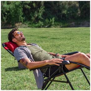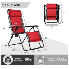 RECLINADOR EXTERIOR DE GRAVIDADE ZERO Feito de tecido de poliéster de alta qualidade para uma experiência relaxante de sentar, e a estrutura durável e resistente suporta até 136 kg. POSIÇÕES MÚLTIPLAS Pode ser ajustado de uma posição totalmente reclinada para uma posição vertical para máximo conforto, e os clipes de travamento embaixo de cada apoio de braço travarão a cadeira com segurança na posição. CONFORTO E CONVENIÊNCIA O apoio de cabeça removível pode ser como travesseiro de apoio lombar, e o porta copos destacável mantém as bebidas ao seu alcance para sua conveniência. USE EM QUALQUER LUGAR Use esta cadeira multifuncional como poltrona reclinável em casa, enquanto acampa ou como cama dobrável , espreguiçadeira ótimo para acampamentos, seu pátio ou como assento adicional para sua sala de estar. TAMANHO IDEAL Quando configurada, a espreguiçadeira mede 48 P x 53 L x 116 centimetros Marca: Não Informado