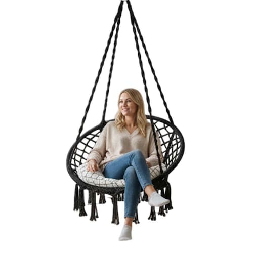 E para aqueles que não querem furar teto ou pregar um gancho, a rede cadeira proporciona a vantagem de prendê-la com cordas. Deixe o ambiente a cada momento do dia mais vivo e moderno; as sombras que se formam nas paredes com a cadeira suspensa, do amanhecer ao entardecer, são fantásticas.