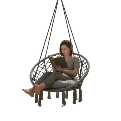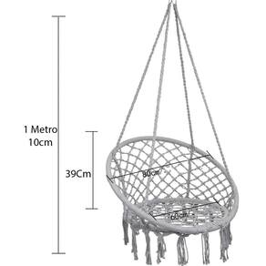Cadeira Rede Balanço Suspenso Algodao Almofada Confortavel Relaxante Descanso Varanda Quintal Jardim Terraço Sacada - Cinza Claro
