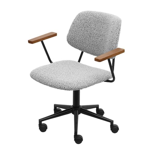 Aço, MadeiraSe você procura uma cadeira Office estilosa com um toque de rusticidade, nossa Cadeira Riga - Cinza é ideal para você! Conta com sua estrutura em aço pintado, assento e encosto com espuma revestida em PU, garantindo assim conforto e uma maior durabilidade da peça. Seus braços são em madeira, oque leva um toque á mais para a peça!