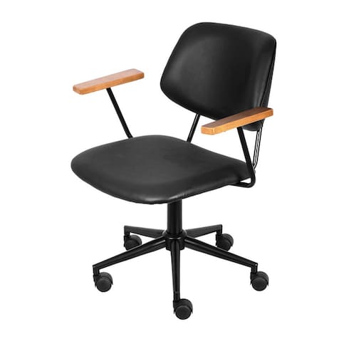 Se você procura uma cadeira Office estilosa com um toque de rusticidade, nossa Cadeira Riga - Preta é ideal para você! Conta com sua estrutura em aço pintado, assento e encosto com espuma revestida em PU, garantindo assim conforto e uma maior durabilidade da peça. Seus braços são em madeira, oque leva um toque á mais para a peça!