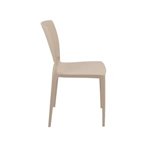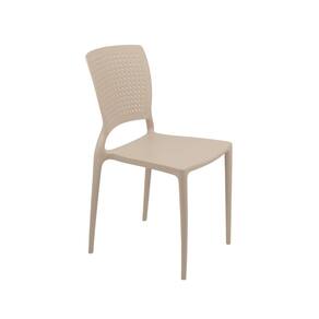 A Cadeira Safira Areia Tramontina é feita de polipropileno e fibra de vidro.