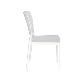 A Cadeira Safira Branca Tramontina é feita de polipropileno e fibra de vidro.