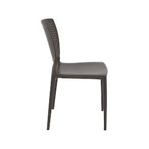 A Cadeira Safira Marrom Tramontina é feita de polipropileno e fibra de vidro.