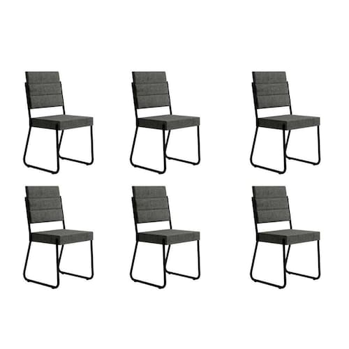Cadeira Sala De Jantar 1736 Kit 6 Uni Preto/grafite - Preto - Carraro