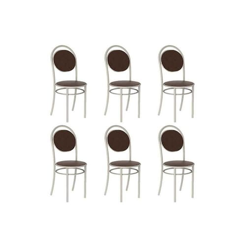 Cadeira Sala de Jantar 190 Aço Kit 6 Uni Prata/Courano Cacau - Carraro - Blush