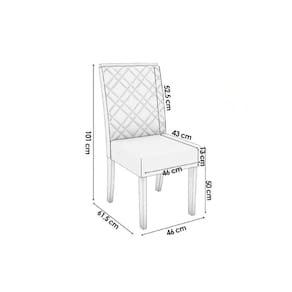 Dimensões(Cm): Comprimento(Profundidade): 61cm x Largura: 46cm x Altura: 101cm Material de Estrutura - Madeira/MDF Tipo de Pintura - UV Tipo de Acabamento da Pintura - Fosco Forração do Revestimento - Tecido Tipo do Assento - Estofado Tipo de Encosto - Estofado Tipo dos Pés - Pés de Madeira Montagem do Produto - Desmontável Certificação de Qualidade - Qualidade Aprovada Garantia - 3 meses