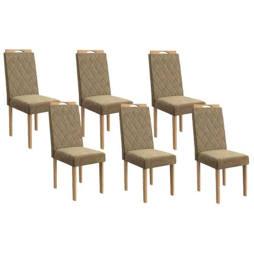 Cadeira Sala de Jantar 2CAD153EA Kit 6 Un Eucalipto/Veludo Bege A036 - Kappesberg
