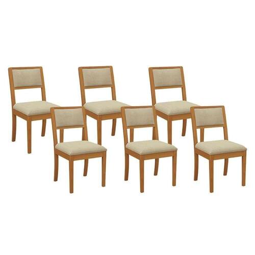 Cadeira Sala De Jantar Alice Kit 6 Un Carvalho/linho Bege A058 - Kappesberg
