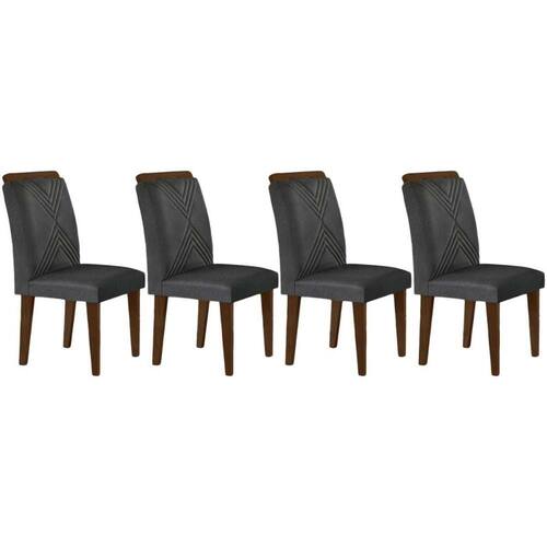 Cadeira Sala de Jantar Amsterdã Madeira Kit 4 Un Capuccino - Linho Grafite - Rufato