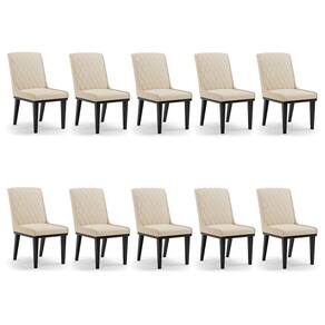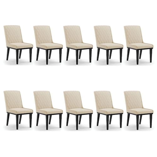 Cadeira Sala De Jantar Base Madeira Preto Kit 10 Sofia Suede D03 - D'rossi Cor Bege