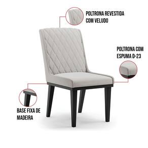 A Cadeira Sofia, é a opção ideal para quem quer um ambiente moderno e sofisticado! Um móvel super compacto, que se adequa perfeitamente em diversos ambientes. É uma ótima escolha para área de descanso, sala de estar, hall de entrada, espaço gourmet, varanda, recepção, escritório ou até mesmo para compor a mesa de jantar. Demais, né? Possui um design elegante, clássico e super convidativo, sem dúvidas ela dará um toque todo especial ao espaço que for posicionada. Feita em madeira maciça de eucalipto reflorestado, possui também base fixa em tom preto o que garante mais segurança, ótima sustentação e durabilidade à peça. O detalhe principal desta linda cadeira , fica por conta da alta-costura no encosto, em estilo matelassê. Um método aplicado no tecido de aparência acolchoada, o que confere um acabamento mais refinado à peça. Além do mais, os desenhos geométricos do tecido adicionam um toque luxuoso ao produto. Seu estofamento é feito com espuma D-23, revestida no Veludo, o que garante maciez e conforto, trazendo aquela sensação de abraço e suavidade ao sentar-se. E o que falar da cor Cinza dessa cadeira ? Um tom extremamente elegante e versátil, perfeito para harmonizar com diferentes estilos de decoração. Afinal, não há nada melhor do que relaxar em uma Cadeira aconchegante, para ler um bom livro, ou assistir aquela série preferida, com o máximo de conforto possível, não é mesmo? Você irá se surpreender com o conforto da Cadeira Sofia. Aqui na D'Rossi, você encontra o que há de melhor em produtos, para você e sua família. Leve seu Kit 10 cadeiras Sofia e arrase!