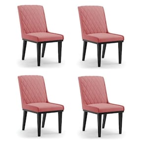 Cadeira Sala De Jantar Base Madeira Preto Kit 4 Sofia Suede D03 - D'rossi Cor Rose