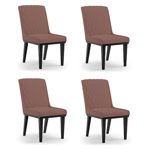 A Cadeira Sofia, é a opção ideal para quem quer um ambiente moderno e sofisticado! Um móvel super compacto, que se adequa perfeitamente em diversos ambientes. É uma ótima escolha para área de descanso, sala de estar, hall de entrada, espaço gourmet, varanda, recepção, escritório ou até mesmo para compor a mesa de jantar. Demais, né? Possui um design elegante, clássico e super convidativo, sem dúvidas ela dará um toque todo especial ao espaço que for posicionada. Feita em madeira maciça de eucalipto reflorestado, possui também base fixa em tom preto o que garante mais segurança, ótima sustentação e durabilidade à peça. O detalhe principal desta linda cadeira , fica por conta da alta-costura no encosto, em estilo matelassê. Um método aplicado no tecido de aparência acolchoada, o que confere um acabamento mais refinado à peça. Além do mais, os desenhos geométricos do tecido adicionam um toque luxuoso ao produto. Seu estofamento é feito com espuma D-23, revestida no Veludo, o que garante maciez e conforto, trazendo aquela sensação de abraço e suavidade ao sentar-se. E o que falar da cor Rosê dessa cadeira ? Um tom extremamente elegante e versátil, perfeito para harmonizar com diferentes estilos de decoração. Afinal, não há nada melhor do que relaxar em uma Cadeira aconchegante, para ler um bom livro, ou assistir aquela série preferida, com o máximo de conforto possível, não é mesmo? Você irá se surpreender com o conforto da Cadeira Sofia. Aqui na D'Rossi, você encontra o que há de melhor em produtos, para você e sua família. Leve seu Kit 04 cadeiras Sofia e arrase!