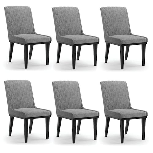 A Cadeira Sofia, é a opção ideal para quem quer um ambiente moderno e sofisticado! Um móvel super compacto, que se adequa perfeitamente em diversos ambientes. É uma ótima escolha para área de descanso, sala de estar, hall de entrada, espaço gourmet, varanda, recepção, escritório ou até mesmo para compor a mesa de jantar. Demais, né? Possui um design elegante, clássico e super convidativo, sem dúvidas ela dará um toque todo especial ao espaço que for posicionada. Feita em madeira maciça de eucalipto reflorestado, possui também base fixa em tom preto o que garante mais segurança, ótima sustentação e durabilidade à peça. O detalhe principal desta linda cadeira , fica por conta da alta-costura no encosto, em estilo matelassê. Um método aplicado no tecido de aparência acolchoada, o que confere um acabamento mais refinado à peça. Além do mais, os desenhos geométricos do tecido adicionam um toque luxuoso ao produto. Seu estofamento é feito com espuma D-23, revestida no Linho, o que garante maciez e conforto, trazendo aquela sensação de abraço e suavidade ao sentar-se. E o que falar da cor Grafite A26 dessa cadeira ? Um tom extremamente elegante e versátil, perfeito para harmonizar com diferentes estilos de decoração. Afinal, não há nada melhor do que relaxar em uma Cadeira aconchegante, para ler um bom livro, ou assistir aquela série preferida, com o máximo de conforto possível, não é mesmo? Você irá se surpreender com o conforto da Cadeira Sofia. Aqui na D'Rossi, você encontra o que há de melhor em produtos, para você e sua família. Leve seu Kit 06 cadeiras Sofia e arrase!