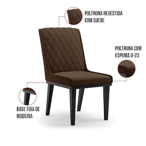 A Cadeira Sofia, é a opção ideal para quem quer um ambiente moderno e sofisticado! Um móvel super compacto, que se adequa perfeitamente em diversos ambientes. É uma ótima escolha para área de descanso, sala de estar, hall de entrada, espaço gourmet, varanda, recepção, escritório ou até mesmo para compor a mesa de jantar. Demais, né? Possui um design elegante, clássico e super convidativo, sem dúvidas ela dará um toque todo especial ao espaço que for posicionada. Feita em madeira maciça de eucalipto reflorestado, possui também base fixa em tom preto o que garante mais segurança, ótima sustentação e durabilidade à peça. O detalhe principal desta linda cadeira , fica por conta da alta-costura no encosto, em estilo matelassê. Um método aplicado no tecido de aparência acolchoada, o que confere um acabamento mais refinado à peça. Além do mais, os desenhos geométricos do tecido adicionam um toque luxuoso ao produto. Seu estofamento é feito com espuma D-23, revestida no Suede, o que garante maciez e conforto, trazendo aquela sensação de abraço e suavidade ao sentar-se. Afinal, não há nada melhor do que relaxar em uma Cadeira aconchegante, para ler um bom livro, ou assistir aquela série preferida, com o máximo de conforto possível, não é mesmo? Você irá se surpreender com o conforto da Cadeira Sofia. Aqui na D'Rossi, você encontra o que há de melhor em produtos, para você e sua família. Leve seu Kit 06 cadeiras Sofia e arrase!
