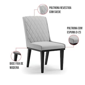 A Cadeira Sofia, é a opção ideal para quem quer um ambiente moderno e sofisticado! Um móvel super compacto, que se adequa perfeitamente em diversos ambientes. É uma ótima escolha para área de descanso, sala de estar, hall de entrada, espaço gourmet, varanda, recepção, escritório ou até mesmo para compor a mesa de jantar. Demais, né? Possui um design elegante, clássico e super convidativo, sem dúvidas ela dará um toque todo especial ao espaço que for posicionada. Feita em madeira maciça de eucalipto reflorestado, possui também base fixa em tom preto o que garante mais segurança, ótima sustentação e durabilidade à peça. O detalhe principal desta linda cadeira , fica por conta da alta-costura no encosto, em estilo matelassê. Um método aplicado no tecido de aparência acolchoada, o que confere um acabamento mais refinado à peça. Além do mais, os desenhos geométricos do tecido adicionam um toque luxuoso ao produto. Seu estofamento é feito com espuma D-23, revestida no Suede, o que garante maciez e conforto, trazendo aquela sensação de abraço e suavidade ao sentar-se. Afinal, não há nada melhor do que relaxar em uma Cadeira aconchegante, para ler um bom livro, ou assistir aquela série preferida, com o máximo de conforto possível, não é mesmo? Você irá se surpreender com o conforto da Cadeira Sofia. Aqui na D'Rossi, você encontra o que há de melhor em produtos, para você e sua família. Leve seu Kit 06 cadeiras Sofia e arrase!