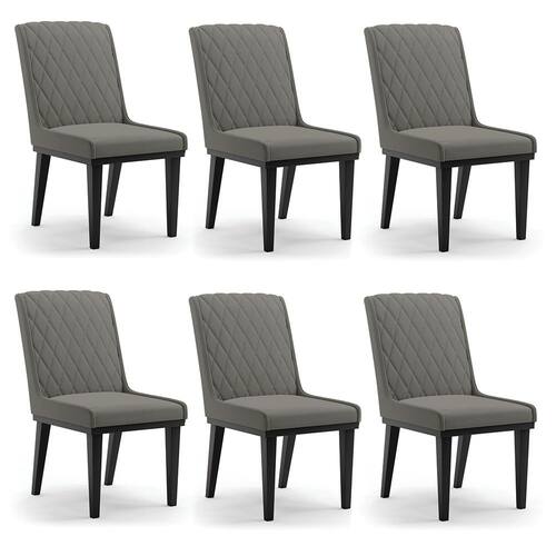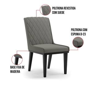A Cadeira Sofia, é a opção ideal para quem quer um ambiente moderno e sofisticado! Um móvel super compacto, que se adequa perfeitamente em diversos ambientes. É uma ótima escolha para área de descanso, sala de estar, hall de entrada, espaço gourmet, varanda, recepção, escritório ou até mesmo para compor a mesa de jantar. Demais, né? Possui um design elegante, clássico e super convidativo, sem dúvidas ela dará um toque todo especial ao espaço que for posicionada. Feita em madeira maciça de eucalipto reflorestado, possui também base fixa em tom preto o que garante mais segurança, ótima sustentação e durabilidade à peça. O detalhe principal desta linda cadeira , fica por conta da alta-costura no encosto, em estilo matelassê. Um método aplicado no tecido de aparência acolchoada, o que confere um acabamento mais refinado à peça. Além do mais, os desenhos geométricos do tecido adicionam um toque luxuoso ao produto. Seu estofamento é feito com espuma D-23, revestida no Suede, o que garante maciez e conforto, trazendo aquela sensação de abraço e suavidade ao sentar-se. E o que falar da cor Grafite dessa cadeira ? Um tom extremamente elegante e versátil, perfeito para harmonizar com diferentes estilos de decoração. Afinal, não há nada melhor do que relaxar em uma Cadeira aconchegante, para ler um bom livro, ou assistir aquela série preferida, com o máximo de conforto possível, não é mesmo? Você irá se surpreender com o conforto da Cadeira Sofia. Aqui na D'Rossi, você encontra o que há de melhor em produtos, para você e sua família. Leve seu Kit 06 cadeiras Sofia e arrase!