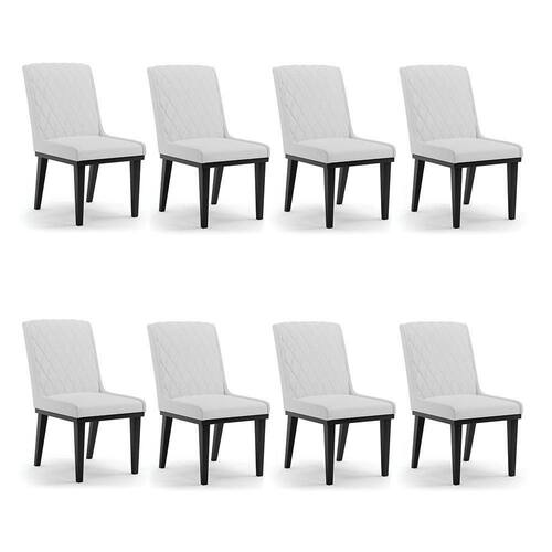 Cadeira Sala De Jantar Base Madeira Preto Kit 8 Sofia Linho D03 - D`rossi Cor Cinza - Blush