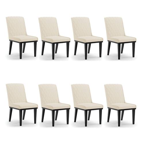 A Cadeira Sofia, é a opção ideal para quem quer um ambiente moderno e sofisticado! Um móvel super compacto, que se adequa perfeitamente em diversos ambientes. É uma ótima escolha para área de descanso, sala de estar, hall de entrada, espaço gourmet, varanda, recepção, escritório ou até mesmo para compor a mesa de jantar. Demais, né? Possui um design elegante, clássico e super convidativo, sem dúvidas ela dará um toque todo especial ao espaço que for posicionada. Feita em madeira maciça de eucalipto reflorestado, possui também base fixa em tom preto o que garante mais segurança, ótima sustentação e durabilidade à peça. O detalhe principal desta linda cadeira , fica por conta da alta-costura no encosto, em estilo matelassê. Um método aplicado no tecido de aparência acolchoada, o que confere um acabamento mais refinado à peça. Além do mais, os desenhos geométricos do tecido adicionam um toque luxuoso ao produto. Seu estofamento é feito com espuma D-23, revestida no Linho, o que garante maciez e conforto, trazendo aquela sensação de abraço e suavidade ao sentar-se. Afinal, não há nada melhor do que relaxar em uma Cadeira aconchegante, para ler um bom livro, ou assistir aquela série preferida, com o máximo de conforto possível, não é mesmo? Você irá se surpreender com o conforto da Cadeira Sofia. Aqui na D'Rossi, você encontra o que há de melhor em produtos, para você e sua família. Leve seu Kit 08 cadeiras Sofia e arrase!