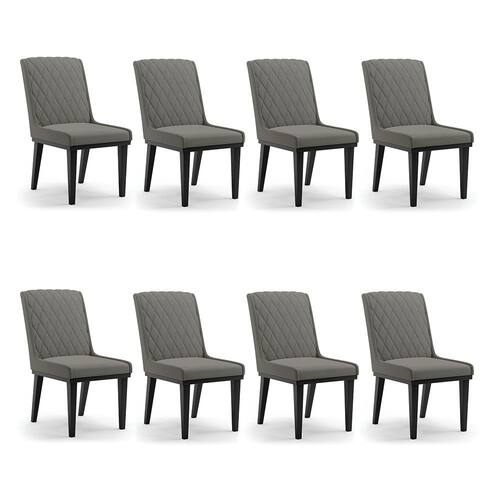 A Cadeira Sofia, é a opção ideal para quem quer um ambiente moderno e sofisticado! Um móvel super compacto, que se adequa perfeitamente em diversos ambientes. É uma ótima escolha para área de descanso, sala de estar, hall de entrada, espaço gourmet, varanda, recepção, escritório ou até mesmo para compor a mesa de jantar. Demais, né? Possui um design elegante, clássico e super convidativo, sem dúvidas ela dará um toque todo especial ao espaço que for posicionada. Feita em madeira maciça de eucalipto reflorestado, possui também base fixa em tom preto o que garante mais segurança, ótima sustentação e durabilidade à peça. O detalhe principal desta linda cadeira , fica por conta da alta-costura no encosto, em estilo matelassê. Um método aplicado no tecido de aparência acolchoada, o que confere um acabamento mais refinado à peça. Além do mais, os desenhos geométricos do tecido adicionam um toque luxuoso ao produto. Seu estofamento é feito com espuma D-23, revestida no Suede, o que garante maciez e conforto, trazendo aquela sensação de abraço e suavidade ao sentar-se. E o que falar da cor Grafite dessa cadeira ? Um tom extremamente elegante e versátil, perfeito para harmonizar com diferentes estilos de decoração. Afinal, não há nada melhor do que relaxar em uma Cadeira aconchegante, para ler um bom livro, ou assistir aquela série preferida, com o máximo de conforto possível, não é mesmo? Você irá se surpreender com o conforto da Cadeira Sofia. Aqui na D'Rossi, você encontra o que há de melhor em produtos, para você e sua família. Leve seu Kit 08 cadeiras Sofia e arrase!