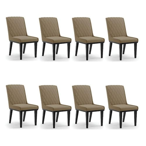 A Cadeira Sofia, é a opção ideal para quem quer um ambiente moderno e sofisticado! Um móvel super compacto, que se adequa perfeitamente em diversos ambientes. É uma ótima escolha para área de descanso, sala de estar, hall de entrada, espaço gourmet, varanda, recepção, escritório ou até mesmo para compor a mesa de jantar. Demais, né? Possui um design elegante, clássico e super convidativo, sem dúvidas ela dará um toque todo especial ao espaço que for posicionada. Feita em madeira maciça de eucalipto reflorestado, possui também base fixa em tom preto o que garante mais segurança, ótima sustentação e durabilidade à peça. O detalhe principal desta linda cadeira , fica por conta da alta-costura no encosto, em estilo matelassê. Um método aplicado no tecido de aparência acolchoada, o que confere um acabamento mais refinado à peça. Além do mais, os desenhos geométricos do tecido adicionam um toque luxuoso ao produto. Seu estofamento é feito com espuma D-23, revestida no Suede, o que garante maciez e conforto, trazendo aquela sensação de abraço e suavidade ao sentar-se. E o que falar da cor Marrom Rato dessa cadeira ? Um tom extremamente elegante e versátil, perfeito para harmonizar com diferentes estilos de decoração. Afinal, não há nada melhor do que relaxar em uma Cadeira aconchegante, para ler um bom livro, ou assistir aquela série preferida, com o máximo de conforto possível, não é mesmo? Você irá se surpreender com o conforto da Cadeira Sofia. Aqui na D'Rossi, você encontra o que há de melhor em produtos, para você e sua família. Leve seu Kit 08 cadeiras Sofia e arrase!