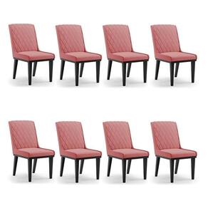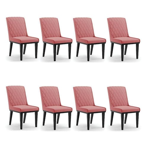 A Cadeira Sofia, é a opção ideal para quem quer um ambiente moderno e sofisticado! Um móvel super compacto, que se adequa perfeitamente em diversos ambientes. É uma ótima escolha para área de descanso, sala de estar, hall de entrada, espaço gourmet, varanda, recepção, escritório ou até mesmo para compor a mesa de jantar. Demais, né? Possui um design elegante, clássico e super convidativo, sem dúvidas ela dará um toque todo especial ao espaço que for posicionada. Feita em madeira maciça de eucalipto reflorestado, possui também base fixa em tom preto o que garante mais segurança, ótima sustentação e durabilidade à peça. O detalhe principal desta linda cadeira , fica por conta da alta-costura no encosto, em estilo matelassê. Um método aplicado no tecido de aparência acolchoada, o que confere um acabamento mais refinado à peça. Além do mais, os desenhos geométricos do tecido adicionam um toque luxuoso ao produto. Seu estofamento é feito com espuma D-23, revestida no Suede, o que garante maciez e conforto, trazendo aquela sensação de abraço e suavidade ao sentar-se. E o que falar da cor Rosê dessa cadeira ? Um tom extremamente elegante e versátil, perfeito para harmonizar com diferentes estilos de decoração. Afinal, não há nada melhor do que relaxar em uma Cadeira aconchegante, para ler um bom livro, ou assistir aquela série preferida, com o máximo de conforto possível, não é mesmo? Você irá se surpreender com o conforto da Cadeira Sofia. Aqui na D'Rossi, você encontra o que há de melhor em produtos, para você e sua família. Leve seu Kit 08 cadeiras Sofia e arrase!