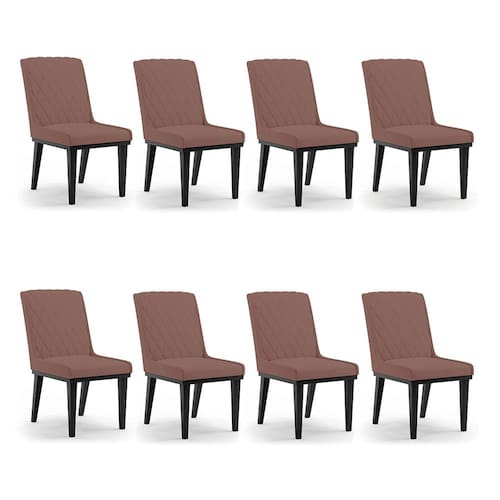 A Cadeira Sofia, é a opção ideal para quem quer um ambiente moderno e sofisticado! Um móvel super compacto, que se adequa perfeitamente em diversos ambientes. É uma ótima escolha para área de descanso, sala de estar, hall de entrada, espaço gourmet, varanda, recepção, escritório ou até mesmo para compor a mesa de jantar. Demais, né? Possui um design elegante, clássico e super convidativo, sem dúvidas ela dará um toque todo especial ao espaço que for posicionada. Feita em madeira maciça de eucalipto reflorestado, possui também base fixa em tom preto o que garante mais segurança, ótima sustentação e durabilidade à peça. O detalhe principal desta linda cadeira , fica por conta da alta-costura no encosto, em estilo matelassê. Um método aplicado no tecido de aparência acolchoada, o que confere um acabamento mais refinado à peça. Além do mais, os desenhos geométricos do tecido adicionam um toque luxuoso ao produto. Seu estofamento é feito com espuma D-23, revestida no Veludo, o que garante maciez e conforto, trazendo aquela sensação de abraço e suavidade ao sentar-se. E o que falar da cor Rosê dessa cadeira ? Um tom extremamente elegante e versátil, perfeito para harmonizar com diferentes estilos de decoração. Afinal, não há nada melhor do que relaxar em uma Cadeira aconchegante, para ler um bom livro, ou assistir aquela série preferida, com o máximo de conforto possível, não é mesmo? Você irá se surpreender com o conforto da Cadeira Sofia. Aqui na D'Rossi, você encontra o que há de melhor em produtos, para você e sua família. Leve seu Kit 08 cadeiras Sofia e arrase!