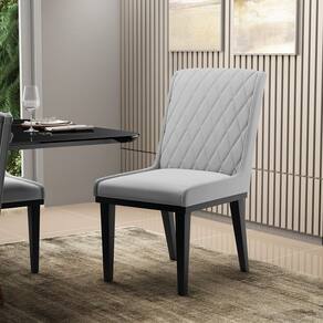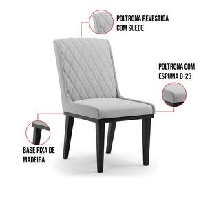 Cadeira Sala de Jantar Base Madeira Preto Sofia Suede D03 - D`Rossi - Cinza