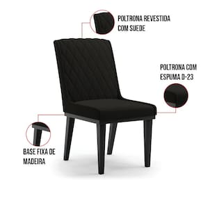 A Cadeira Sofia, é a opção ideal para quem quer um ambiente moderno e sofisticado! Um móvel super compacto, que se adequa perfeitamente em diversos ambientes. É uma ótima escolha para área de descanso, sala de estar, hall de entrada, espaço gourmet, varanda, recepção, escritório ou até mesmo para compor a mesa de jantar. Demais, né? Possui um design elegante, clássico e super convidativo, sem dúvidas ela dará um toque todo especial ao espaço que for posicionada. Feita em madeira maciça de eucalipto reflorestado, possui também base fixa em tom preto o que garante mais segurança, ótima sustentação e durabilidade à peça. O detalhe principal desta linda cadeira, fica por conta da alta-costura no encosto, em estilo matelassê. Um método aplicado no tecido de aparência acolchoada, o que confere um acabamento mais refinado à peça. Além do mais, os desenhos geométricos do tecido adicionam um toque luxuoso ao produto. Seu estofamento é feito com espuma D-23, revestida no Suede, o que garante maciez e conforto, trazendo aquela sensação de abraço e suavidade ao sentar-se. E o que falar da cor Preto dessa cadeira? Um tom extremamente elegante e versátil, perfeito para harmonizar com diferentes estilos de decoração. Afinal, não há nada melhor do que relaxar em uma cadeira aconchegante, para ler um bom livro, ou assistir aquela série preferida, com o máximo de conforto possível, não é mesmo? Você irá se surpreender com o conforto da cadeira Sofia. Aqui na D'Rossi, você encontra o que há de melhor em produtos, para você e sua família. Leve a sua e arrase!