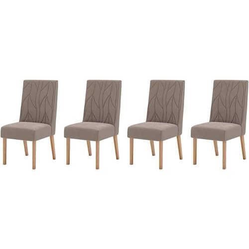Abaixo segue os produtos do KIT: Cadeira Sala de Jantar Eloá Kit 4 Un Nature/Veludo Light Marrom Amêndoa - Henn