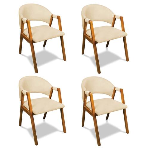 Cadeira Sala de Jantar Em Madeira kit 4 Yara Suede D03 - D`Rossi - Bege