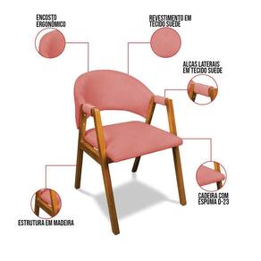 Madeira, SuedeTransforme a sua sala de jantar com a Cadeira Yara, a escolha ideal para quem busca estilo, conforto e durabilidade. Com um design moderno e sofisticado, esta cadeira adiciona um toque de elegância a qualquer ambiente, seja na sala de jantar ou na cozinha. Sua base fixa em madeira e o revestimento em tecido Suede Rosê combinam facilmente com diferentes estilos de decoração, tornando sua mesa ainda mais convidativa. Feita com madeira de reflorestamento de eucalipto, a Cadeira Yara é sustentável e robusta, suportando até 120 kg. Sua estrutura sólida, acabamento impecável e espuma de alta qualidade D-23 garantem um assento confortável para aproveitar cada refeição com prazer. Os braços de madeira, além de apresentarem um design vazado elegante, possuem detalhes revestidos do mesmo tecido da cadeira, proporcionando flexibilidade e conforto para apoiar seus braços, tornando-os ideais para longos jantares em família ou almoços tranquilos. Além de sua qualidade superior, a Cadeira Yara é leve e fácil de transportar, adaptando-se a cozinhas e salas de jantar de todos os tamanhos. Aproveite esta oportunidade para renovar o seu espaço com uma cadeira que une beleza, funcionalidade e um preço irresistível. Não perca tempo, garanta a sua antes que o estoque acabe e leve para casa uma peça que vai transformar seu ambiente! Dimensões do Produto: Altura Total: 83 cm Largura Total: 57 cm Profundidade Total: 65 cm Peso: 10 kg Outras medidas: Altura do Encosto: 29 cm Largura do Encosto: 46 cm Largura do Assento: 49 cm Profundidade do Assento: 48 cm Altura do chão ao Assento: 45 cm Espessura do Assento: 5 cm Espessura do Encosto: 8 cm Espessura do Braço: 3 cm Especificações do Produto: Estrutura: Madeira Eucalipto Espuma: D-23 Tecido: Suede Peso Suportado: Até 120 Kg Tipo de Pés: Base de Madeira Tipo de Encosto: Fixo Tipo de Assento: Fixo Complexidade da Montagem: Baixo Montagem: O produto vai montado Garantia: 90 dias contra defeito de fabricação Instruções de Limpeza: Utilizar um pano limpo e levemente úmido Você irá Receber: 01 Cadeira Sala de Jantar - Entregue em: 01 Volume