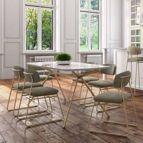 Cadeira Sala de Jantar Encosto e Assentos Estofados Linho Jaraguá Dourado/Linho Claro - Marrom