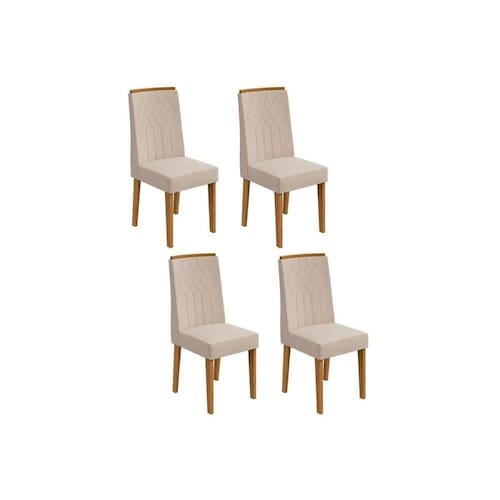 Cadeira Sala de Jantar Exclusive Kit 4 Un Rovere/Amêndoa/Linho Rinzai Bege - Lopas