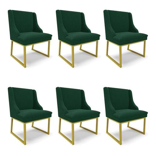 Dê um novo ar à sua sala de jantar e cozinha com a Cadeira Liz, uma opção perfeita para quem valoriza estilo, conforto e durabilidade. Com um design moderno e sofisticado, essa cadeira eleva a elegância de qualquer espaço, seja na sala de jantar ou na cozinha. Sua base metálica industrial em dourado e o revestimento em tecido Bouclê Verde harmonizam facilmente com diversos estilos de decoração, tornando sua mesa. Fabricada com madeira de eucalipto e pinus, a Cadeira Liz não é apenas robusta e capaz de suportar até 120 kg, mas também ecologicamente responsável. Seu acabamento impecável inclui espuma de alta qualidade D-23, proporcionando um assento confortável para que você possa desfrutar de cada refeição com prazer sendo ideal para jantares prolongados em família. Além de sua qualidade superior, a Cadeira Liz é leve e fácil de movimentar, sendo perfeita para cozinhas e salas de jantar de todos os tamanhos. Não perca a chance de renovar seu ambiente com uma cadeira que combina beleza, funcionalidade e um preço acessível. Garanta seu Kit 6 Poltronas antes que o estoque acabe e transforme seu espaço, leve para casa uma peça que vai transformar seu ambiente!
