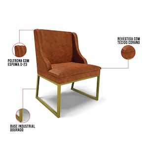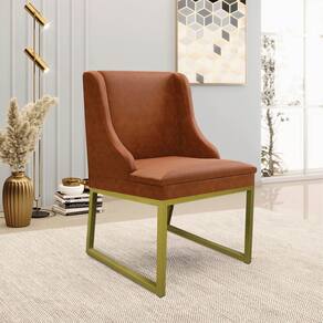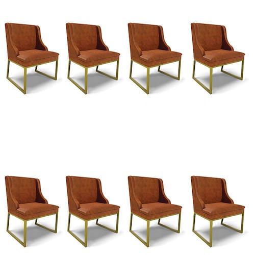Cadeira Sala de Jantar Industrial Dourado kit 8 Liz Sint PU Nozes D03 - D`Rossi - Marrom